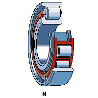rolamento N-1034 é um rolamento de rolos com uma carreira e flanges no anel externo e flange em um dos lados no anel interno